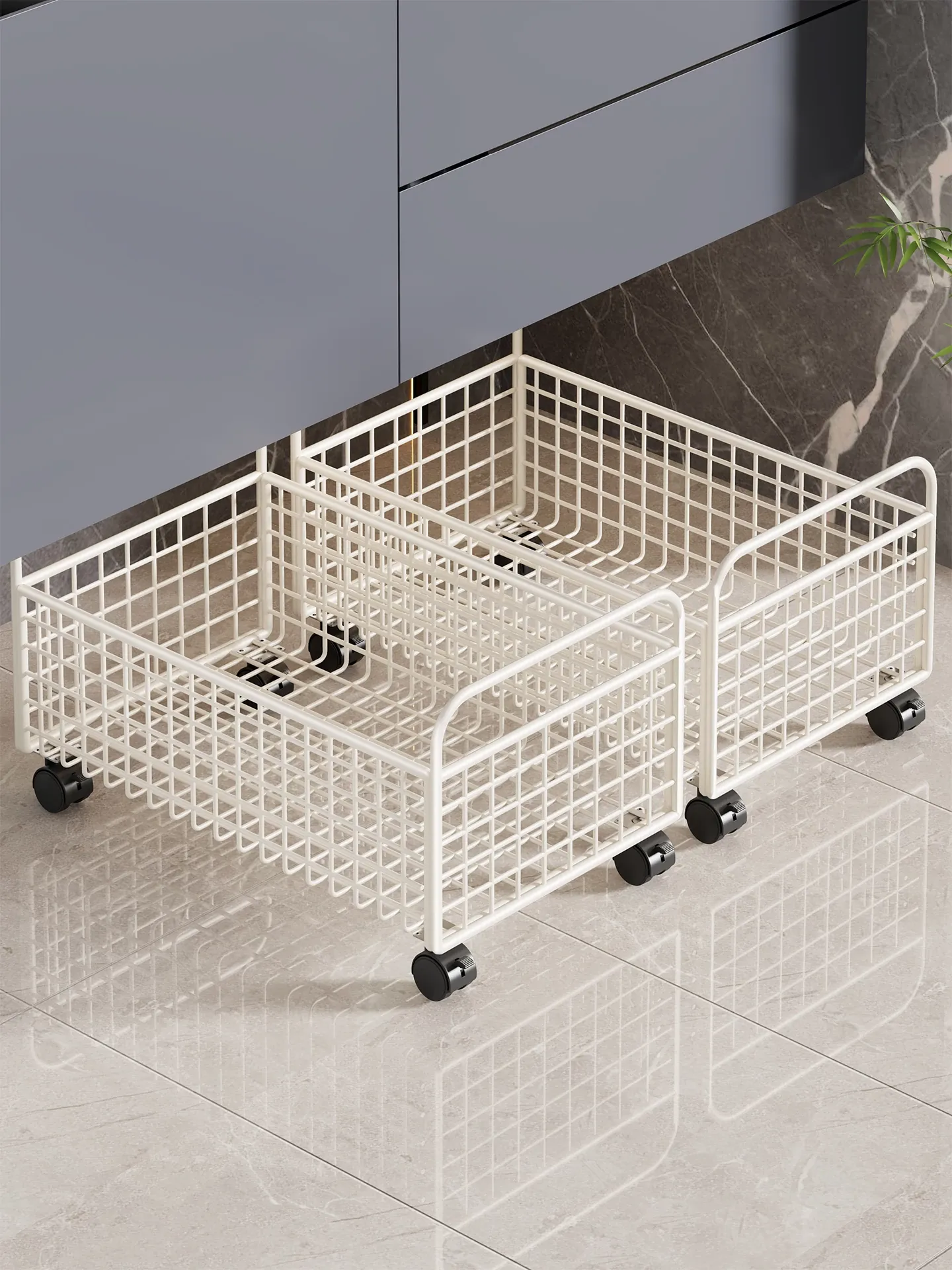 おしゃれなバスルームキャビネット下のランドリーハムスター、軽 luxeデザイン、キャスター付きで移動もラクラク!洗面所や洗濯物の収納に最適な美しいランドリーバスケット。