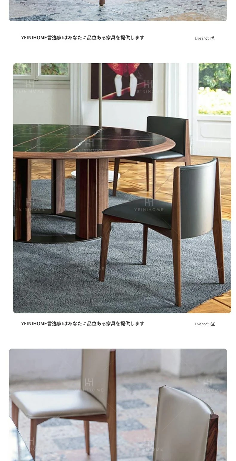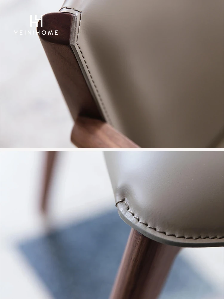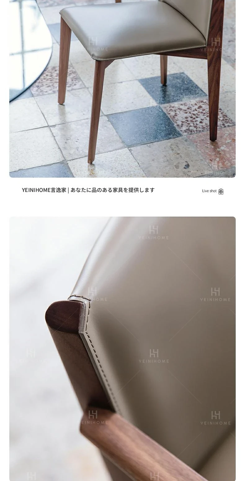 言逸家丨Hopeの北欧スタイル、ブラックウォルナット無垢材のサドルレザー製ダイニングチェア。シンプルでモダン、心地よい背もたれ付きのリラックスチェア。あなたの食卓に洗練された美しさを加えます。