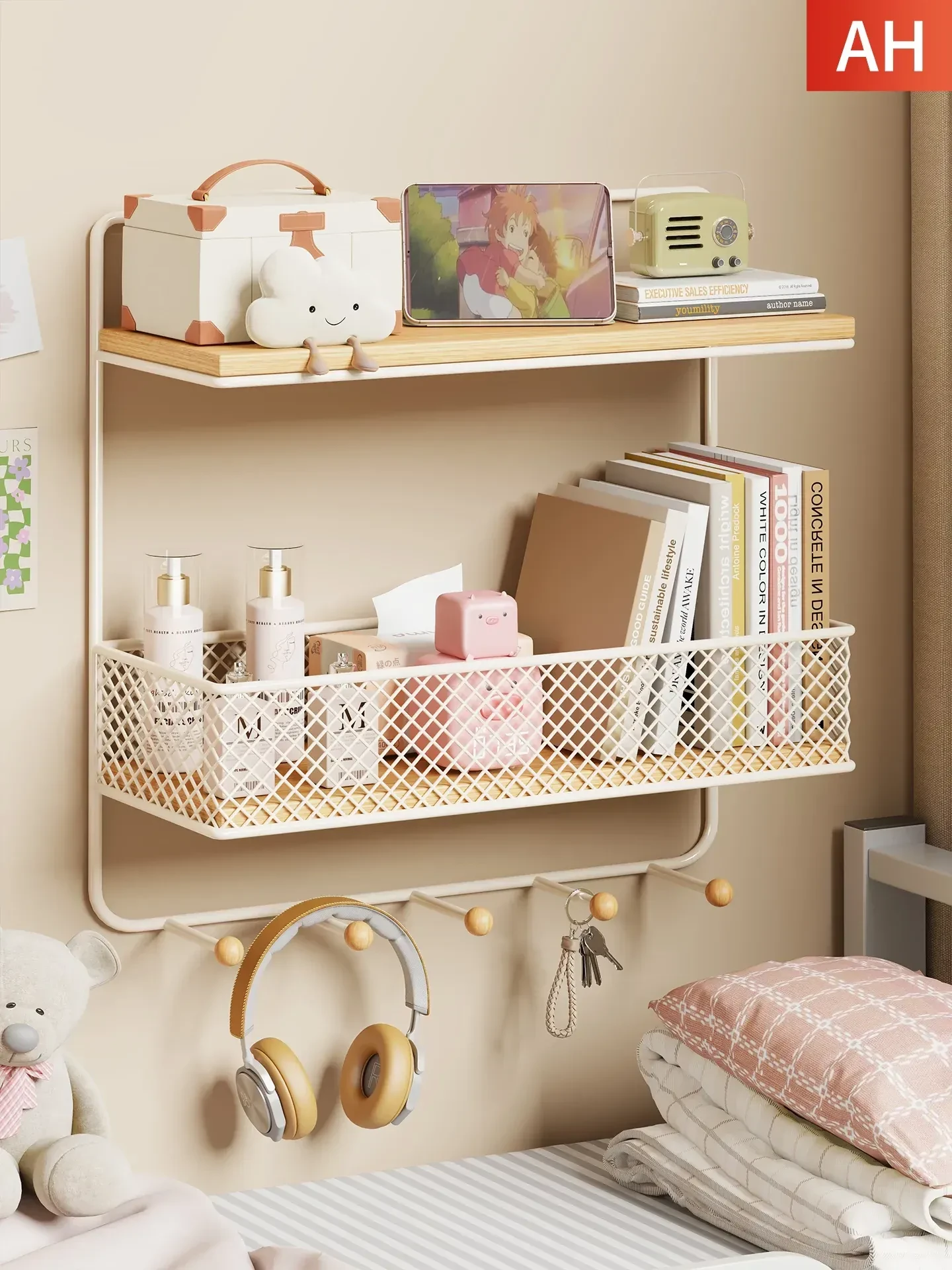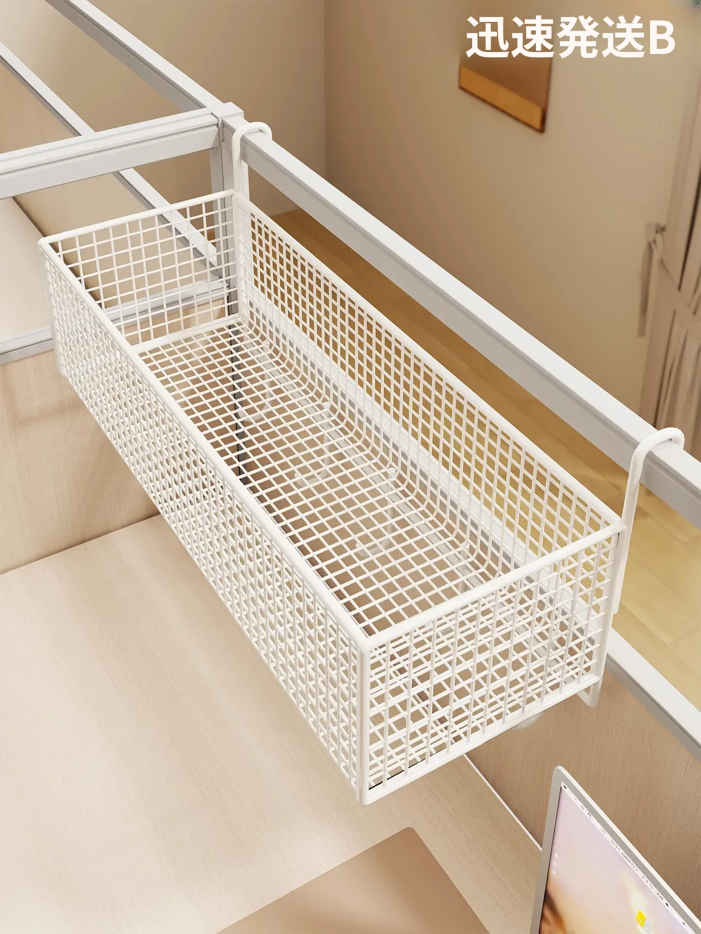 オフィス用デスクトップ収納ラック - 壁掛け式の整理整頓マジック! 寮のベッドサイドにも最適な収納バスケットで、小物もすっきり整理。快適な作業環境を実現!