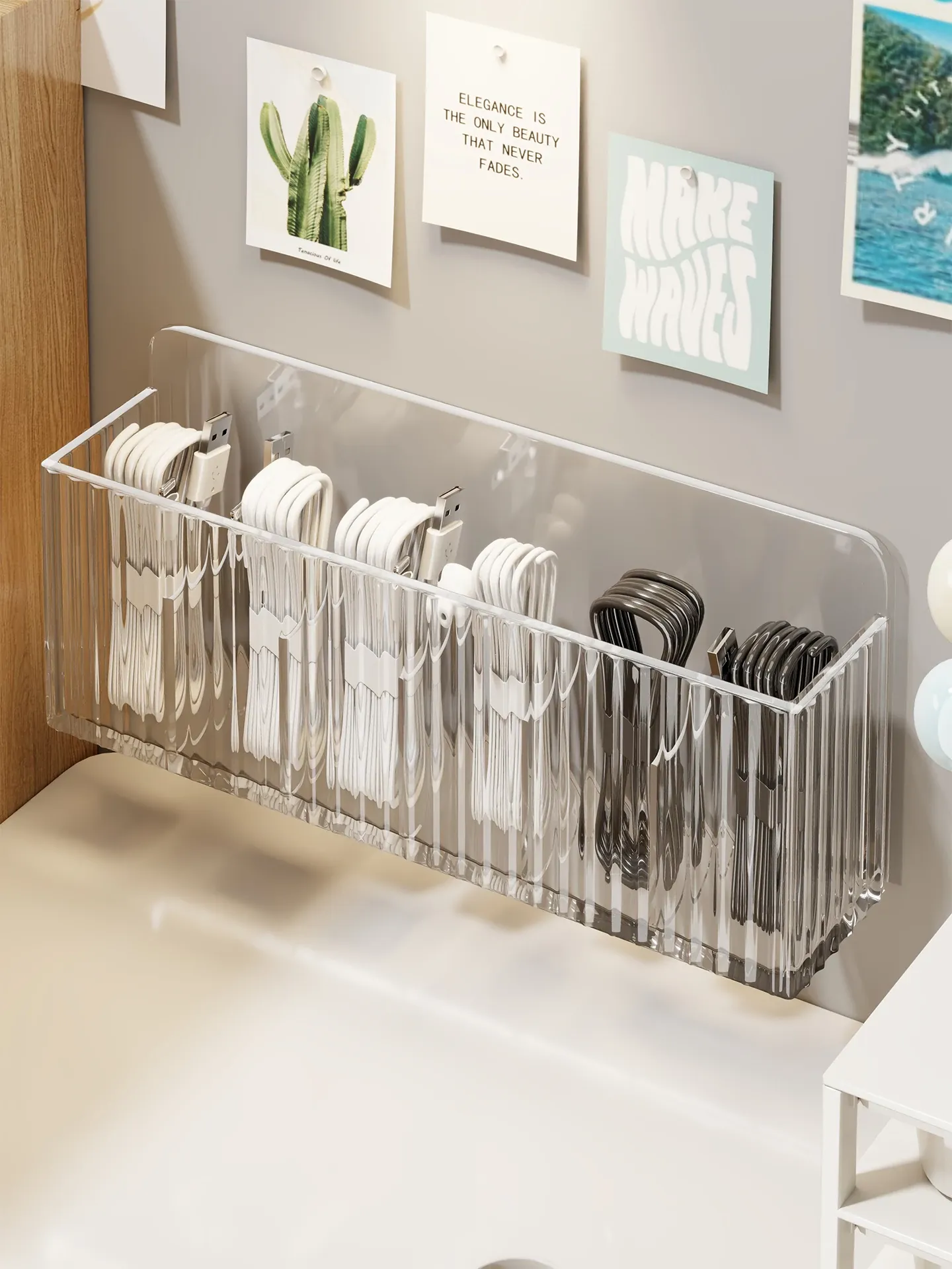 壁掛け式データケーブル収納ボックス - 家庭用電源コードの整理整頓に最適!マルチ機能スマホ充電器用、スッキリとした空間を実現する便利アイテム!