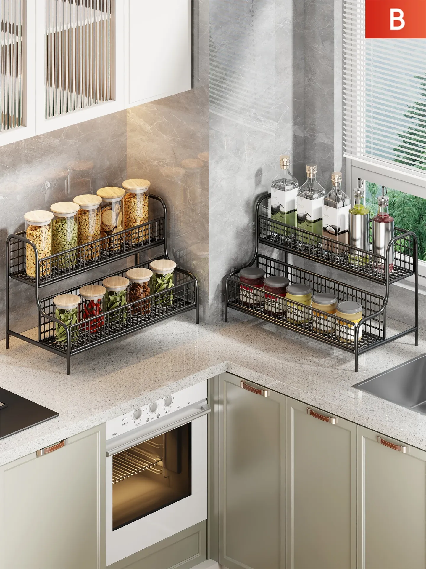 キッチン収納ラック - 調味料や油、塩、醤油、酢を整理整頓!多層式で省スペースのマルチファンクションラックで、あなたの料理をもっと楽しく便利に。