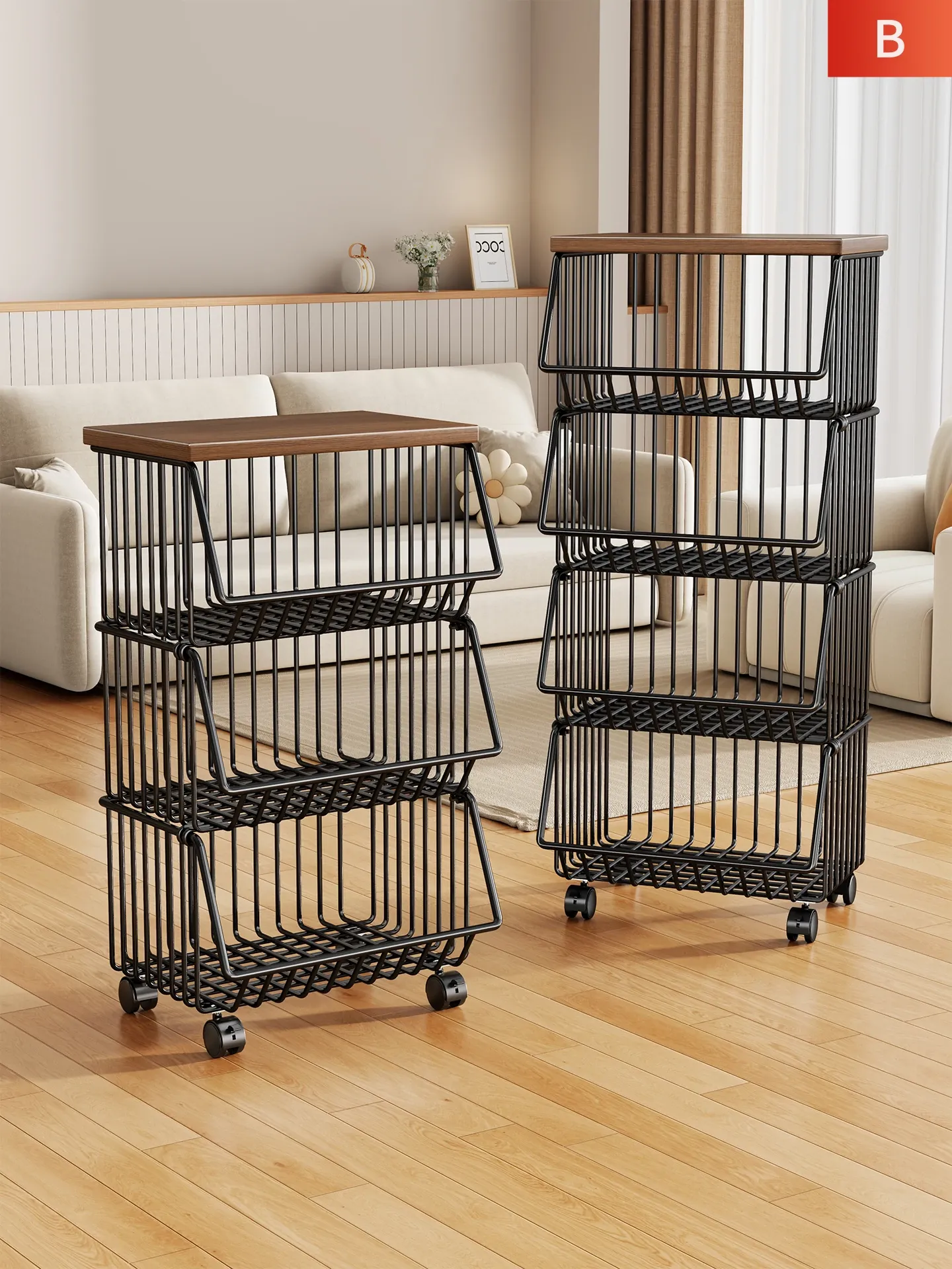 キッチン用野菜・果物調味料ラック、リビングやダイニングにぴったりのスタンド式スナック収納カート、多段整理ラックでおしゃれにスッキリ!