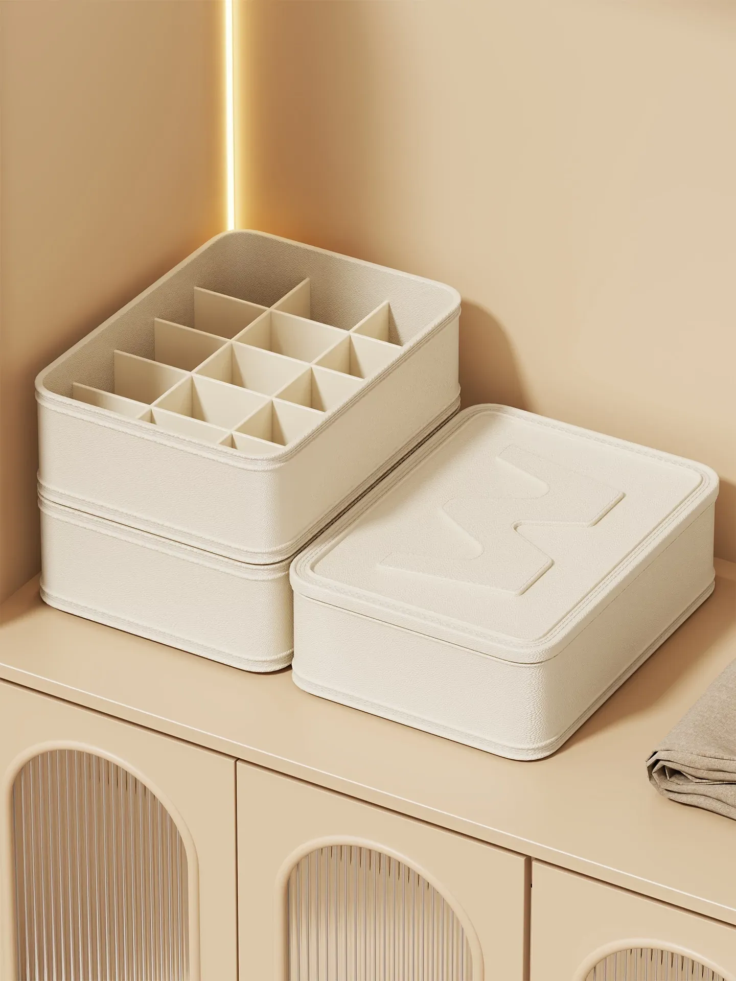 衣類収納ボックス - 下着・靴下・ショーツを整理整頓!家のクローゼットにぴったりな3in1仕切りで、すっきりとした空間を実現。おしゃれで便利な収納アイテム!