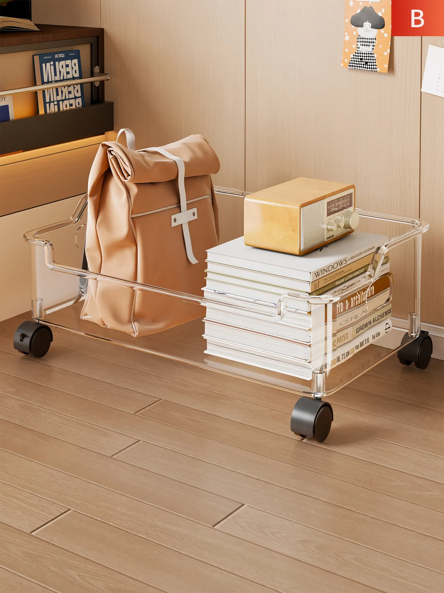 教室必备!透明可移动多功能書籍収納ボックス - 学生専用の便利なブックバッグ収納ラック!整理整頓が簡単で、スッキリとした空間を実現します!