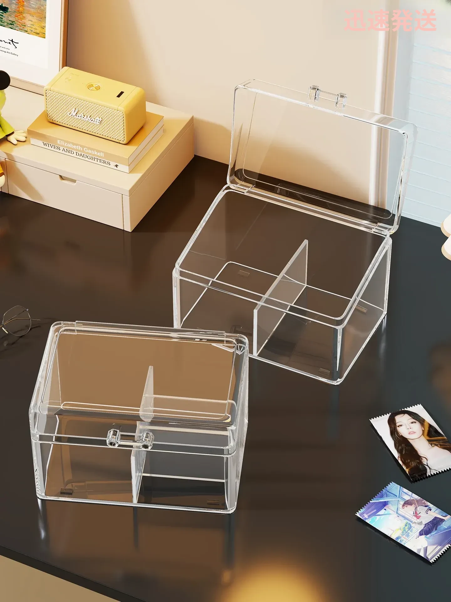 デスクトップカード収納ボックス 透明カバー付き 防塵アニメカードディスプレイボックス おしゃれな収納ラックで、大切なコレクションを美しく保管!