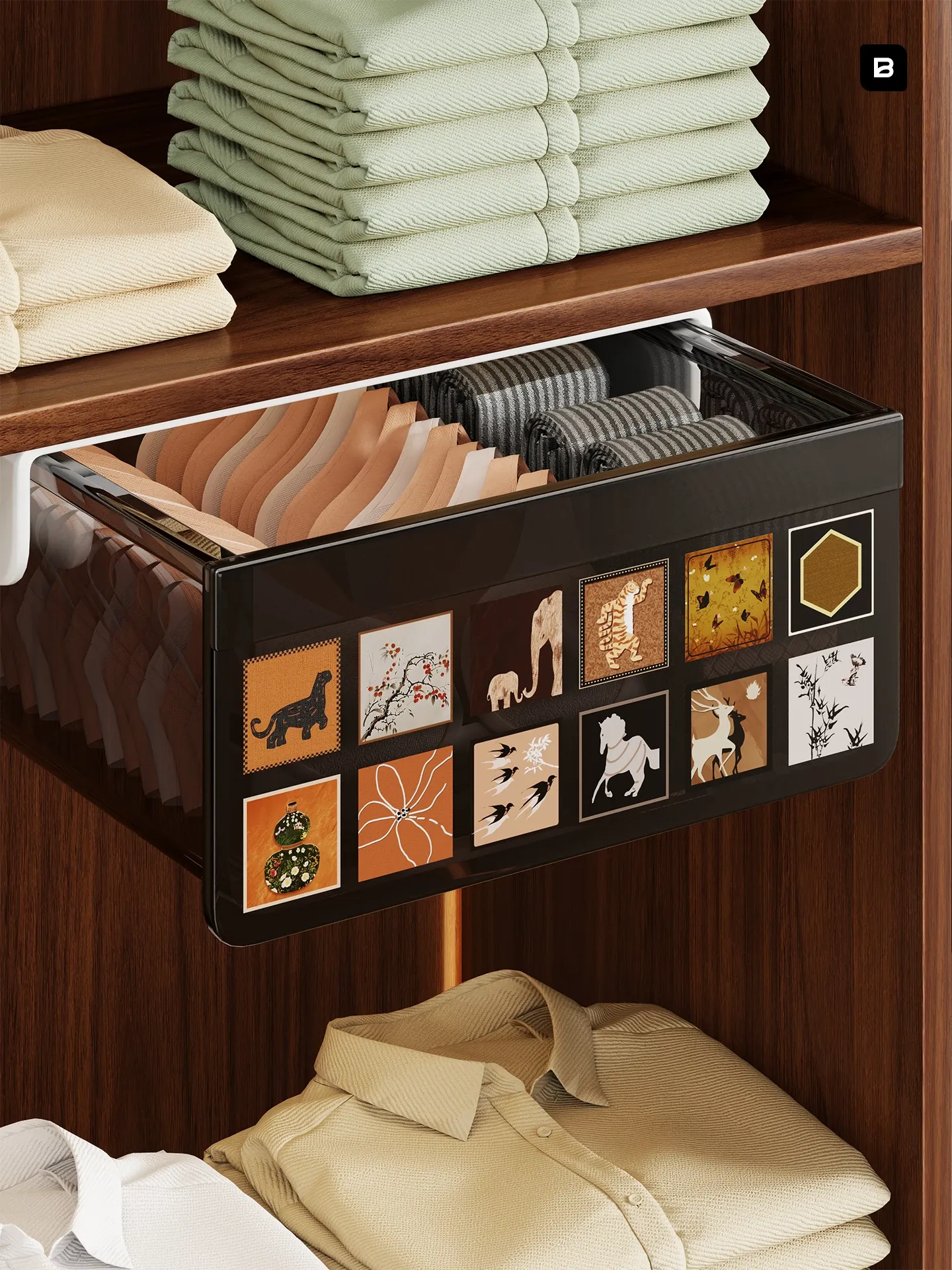 クローゼット引き出し式棚掛けインナー・ソックス整理神器!層別収納で使いやすい、下掛け引き出しバスケット収納ラックでスッキリ整理!